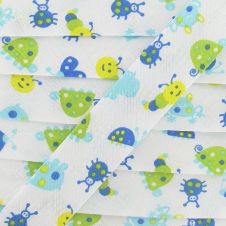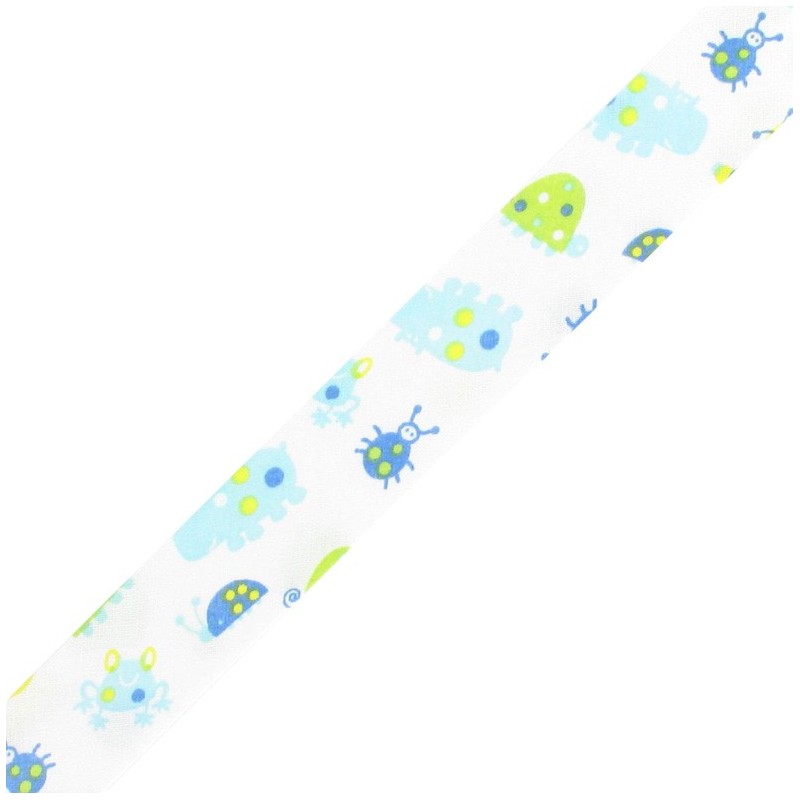 Biais fantaisie animaux enfantins blanc, bleu, ciel, vert, jaune