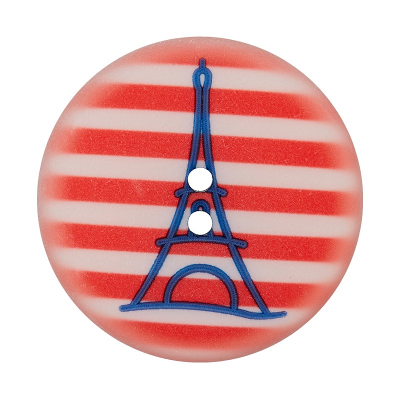 Bouton Tour Eiffel rouge 28 mm. Optez pour ces gros boutons rayés aux accents parisiens. Ils conviendront pour vos gilets, vestes, manteaux, etc.