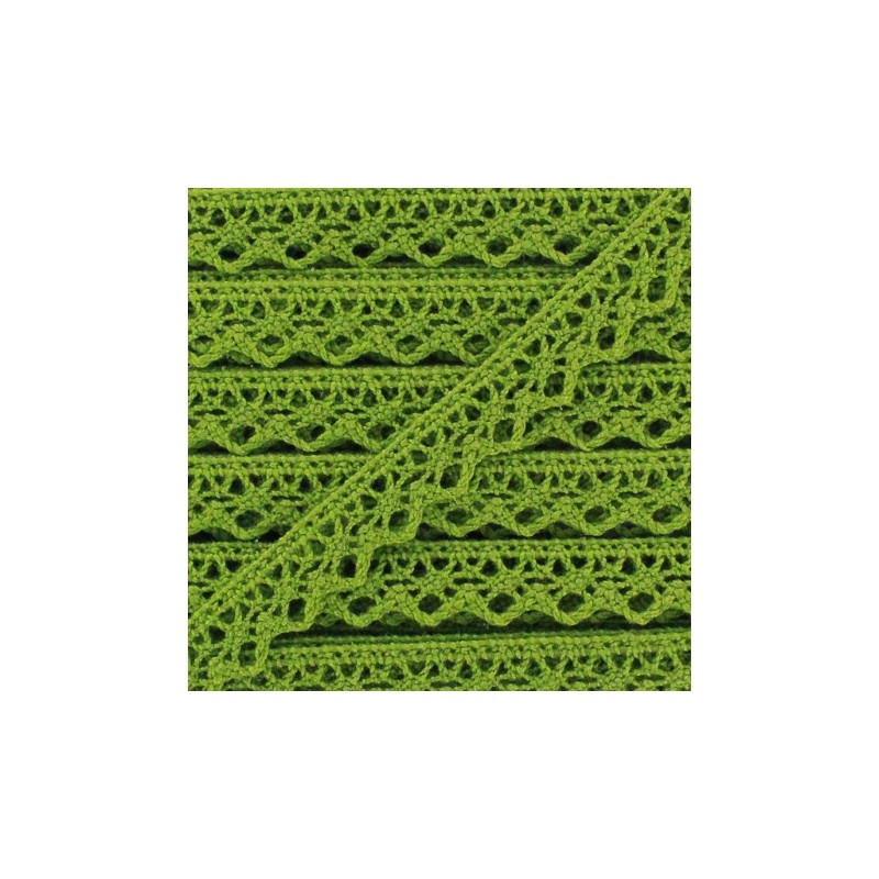 La dentelle au fuseau est une technique traditionnelle de la passementerie. Le fil utilisé est en coton mercerisé, lui donnant un aspect soyeux et brillant.