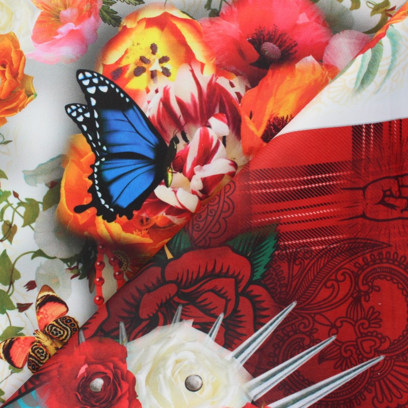 Tissu panneau velours ras Skulls Velvet - multicolore