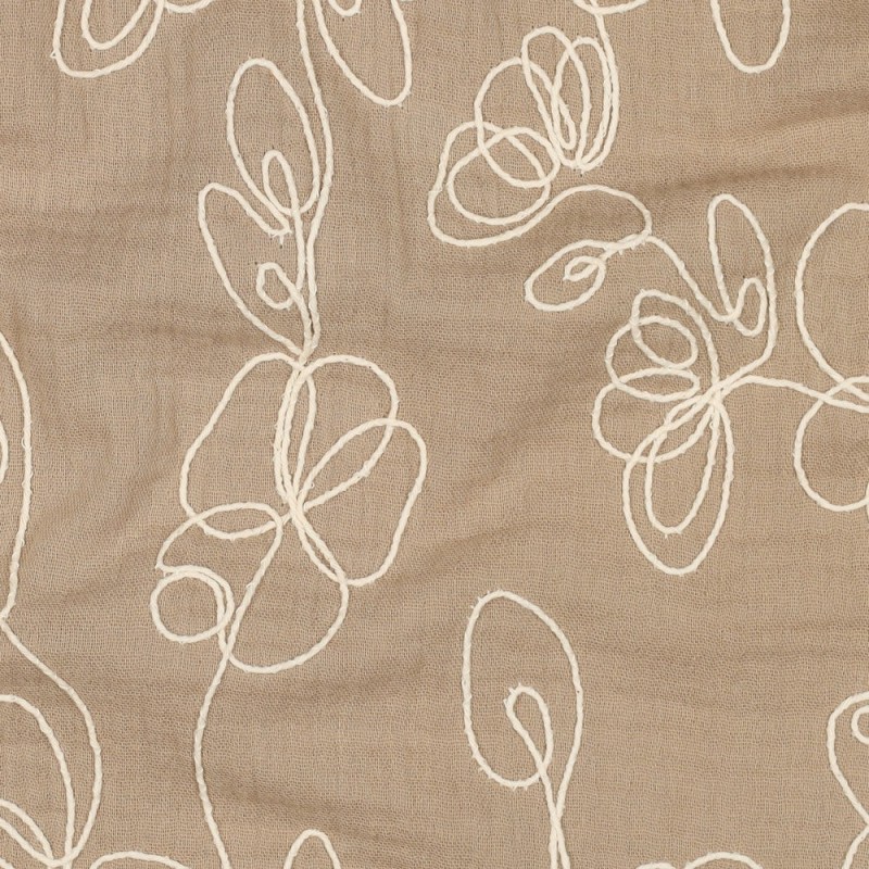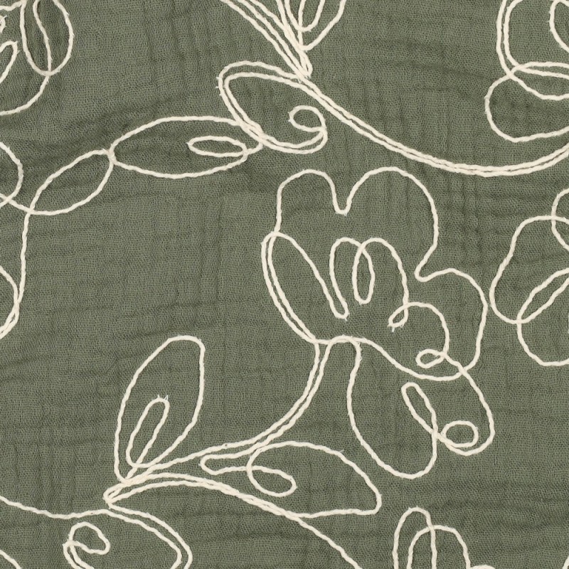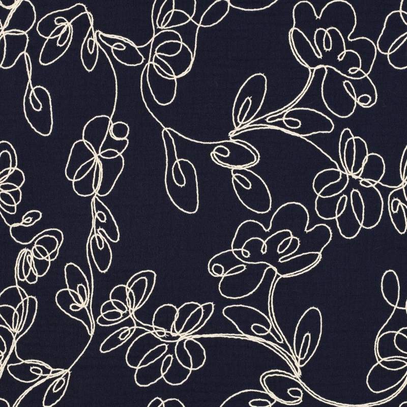 Craquez pour ce tissu double gaze de coton Esquisse et apportez une touche artistique à vos basiques. Sa maille gaufrée, douce et respirante, est idéale pour confectionner des blouses, des robes longues bohèmes ou des ensembles. On adore ses grandes fleurs brodées écrues. Une matière naturelle et texturée pour des créations confortables.