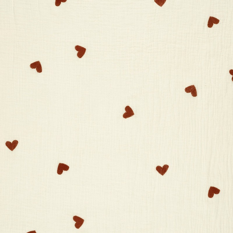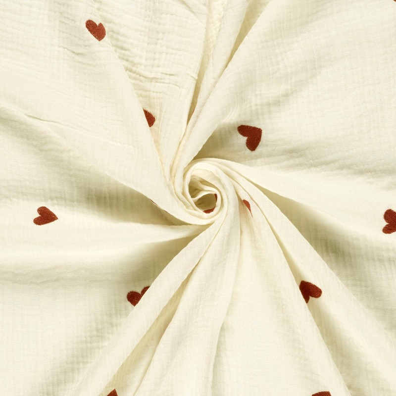 Craquez pour ce tissu double gaze de coton brodé Coeur. Sa texture naturellement gaufrée et sa légèreté sont idéales pour confectionner des blouses aériennes, des robes d’été ou des ensembles confortables. On adore ces coeurs rouges sur un fond écru.