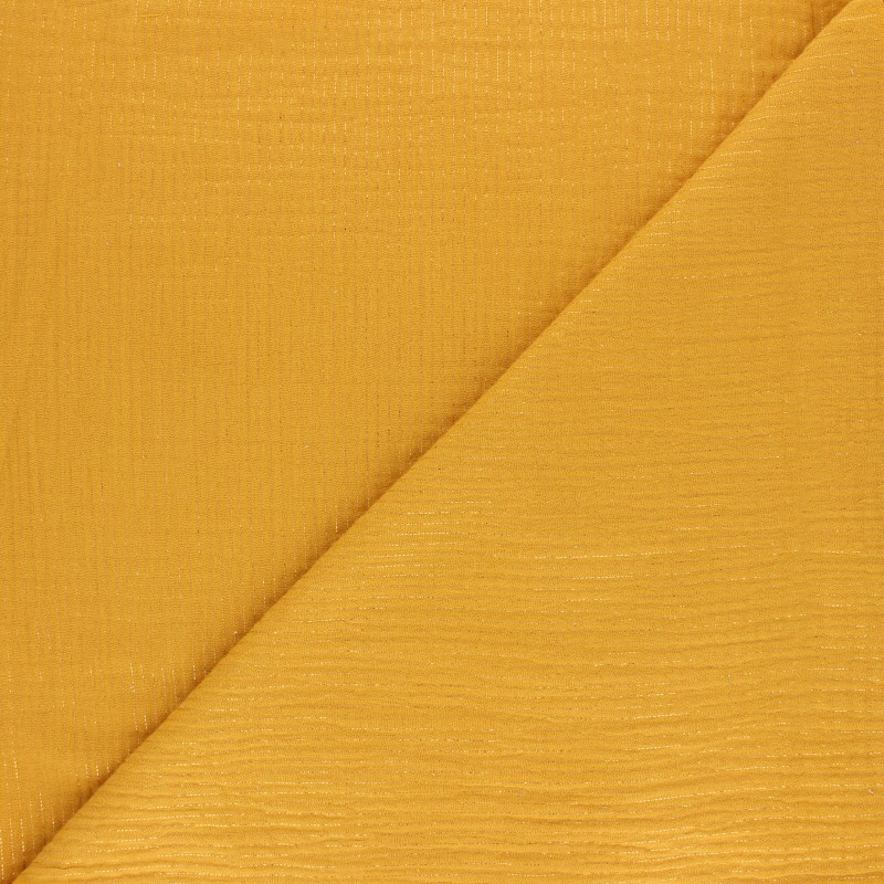Tissu double gaze de coton rayure lurex - Jaune moutarde x 10cm