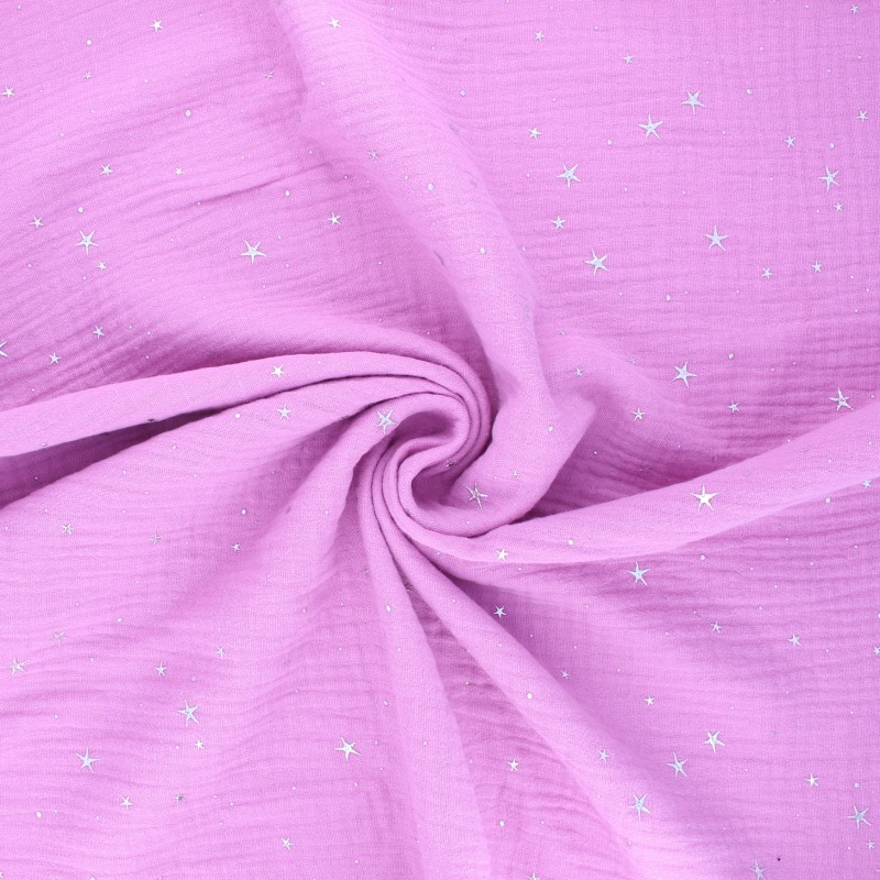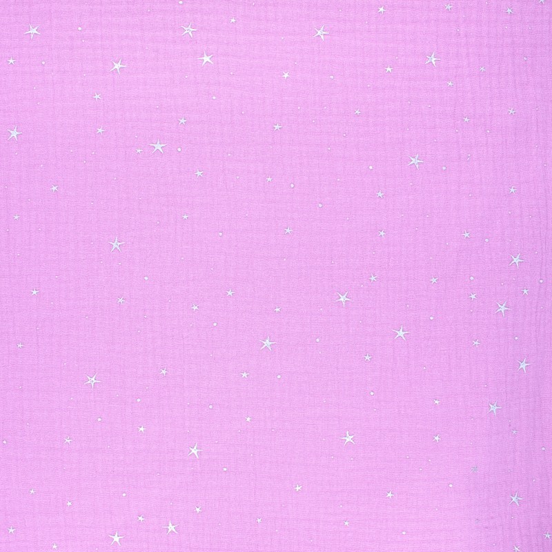 Envie de plonger dans l'immensité de l'univers ? Craquez pour cette nouvelle double gaze de coton Cosmicolo, avec ses motifs argentés d'étoiles sur un fond rose orchidée. Ce tissu certifié Oeko-tex® standard 100 est idéal pour la création de vêtements d’enfants et adultes : blouses, robes, gigoteuses légères et d'accessoires.