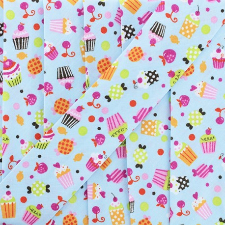 Biais Coton Bio Cupcake - Bleu Ciel x 1m