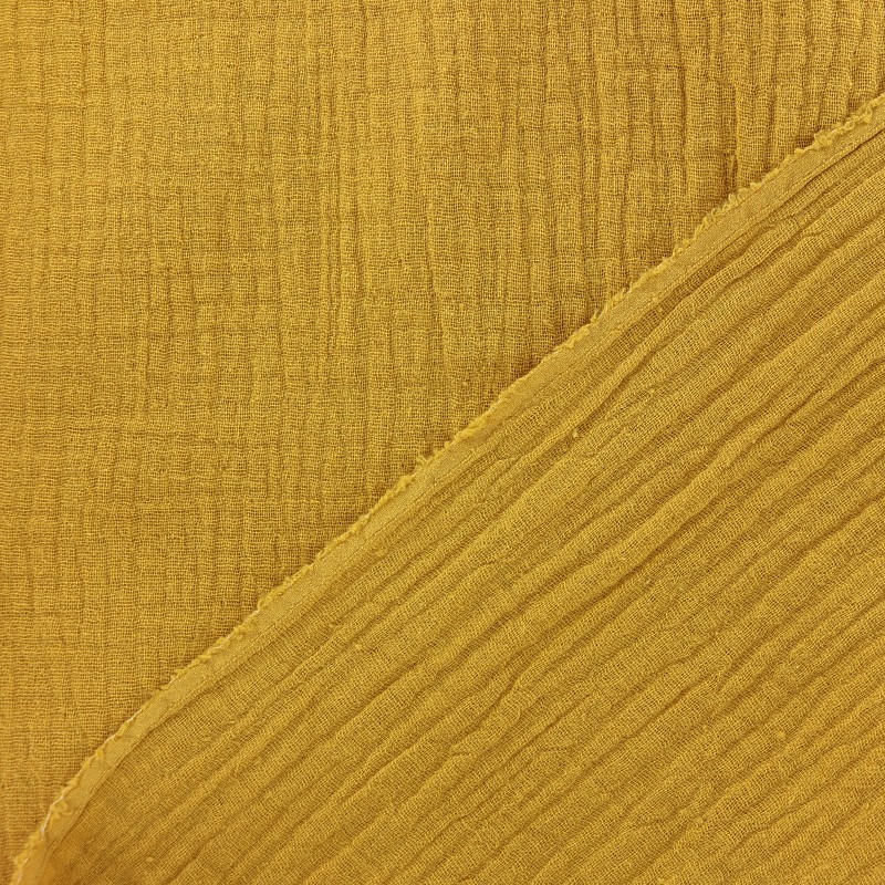 Découvrez la triple gaze de coton unie, plus douce et plus épaisse de la double gaze. Cette étoffe 100% coton et certifié Oeko-tex® est idéale pour la réalisation de vêtements pour enfants et bébés mais aussi pour les accessoires et le linge de maison. Ce tissu légèrement froissé ne nécessite pas de repassage. Craquez pour cette couleur miel très tendance !