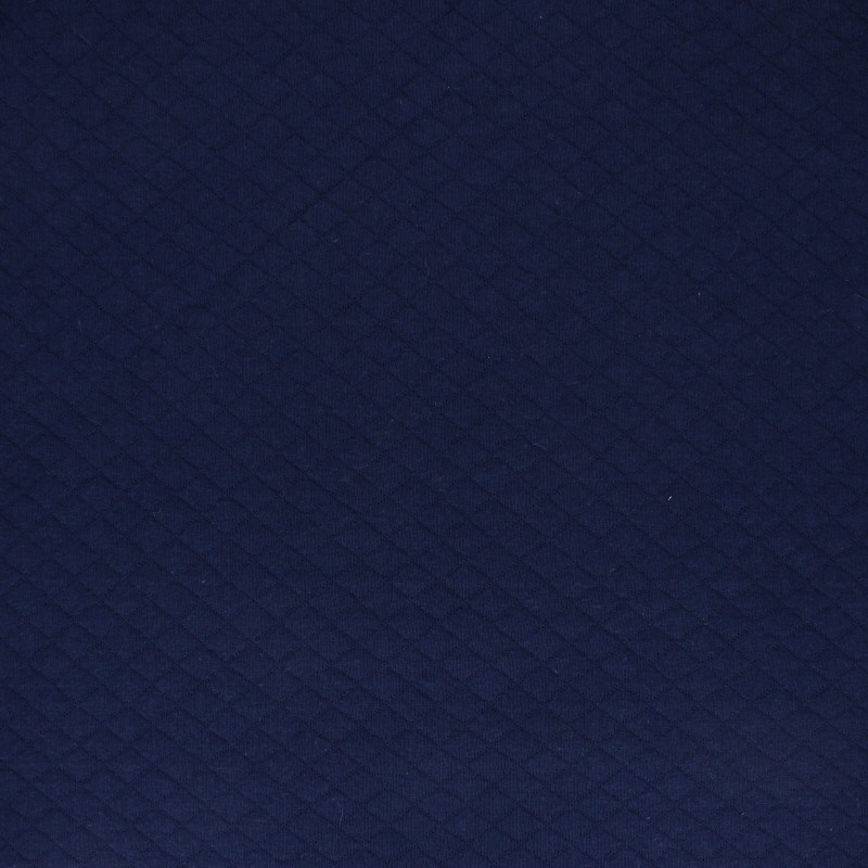 Très joli tissu jersey matelassé losanges 10/20, Oeko-tex® Doux et confortable ! Craquez pour ce tissu jersey matelassé losanges 10/20 bleu marine, et profitez d'un nuage de douceur pour vos projets de couture : petit gilet, petite veste, mais aussi d'accessoires : coussins, pochettes, sacs...