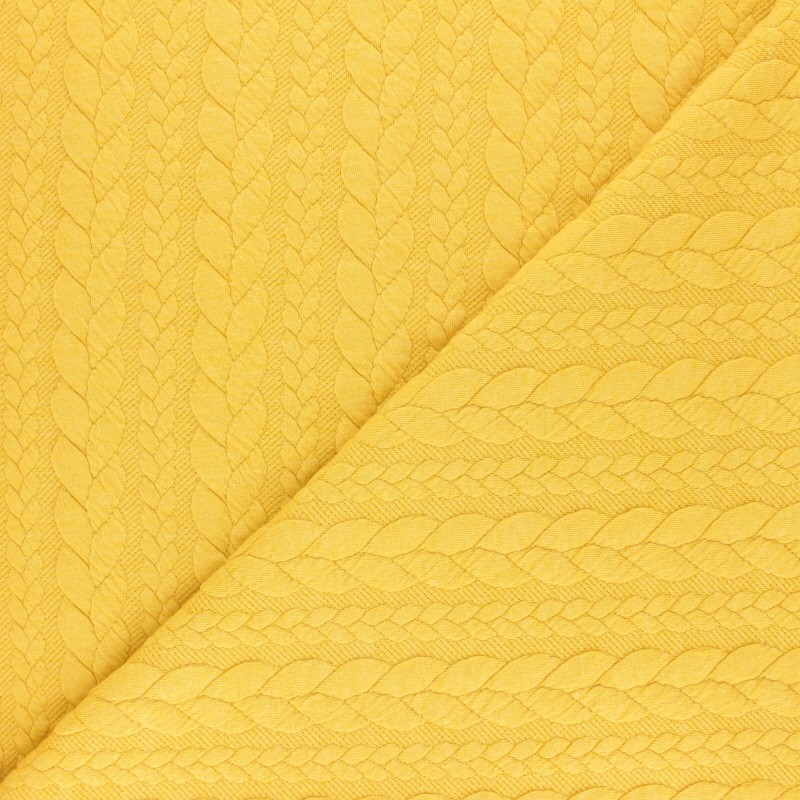 Craquez pour ce joli tissu jersey matelassé jaune pastel avec son matelassage en forme de torsades! Avec ce tissu bi-élastique et ultra-confort réalisez des sweats, robes, jupes, cardigans, pulls...