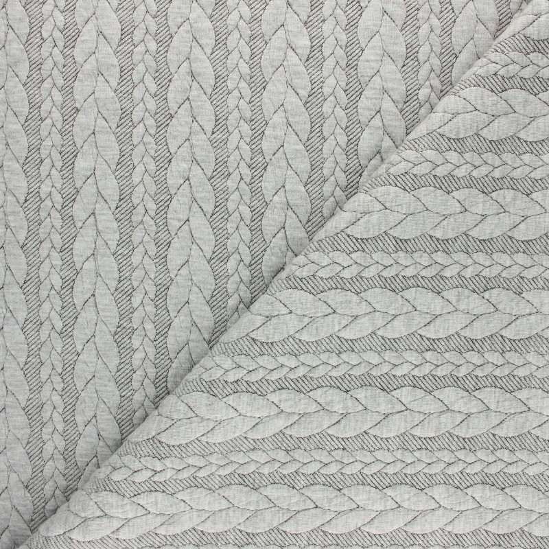 Craquez pour ce joli tissu jersey matelassé gris clair chiné avec son matelassage en forme de torsades! Avec ce tissu bi-élastique et ultra-confort réalisez des sweats, robes, jupes, cardigans, pulls...