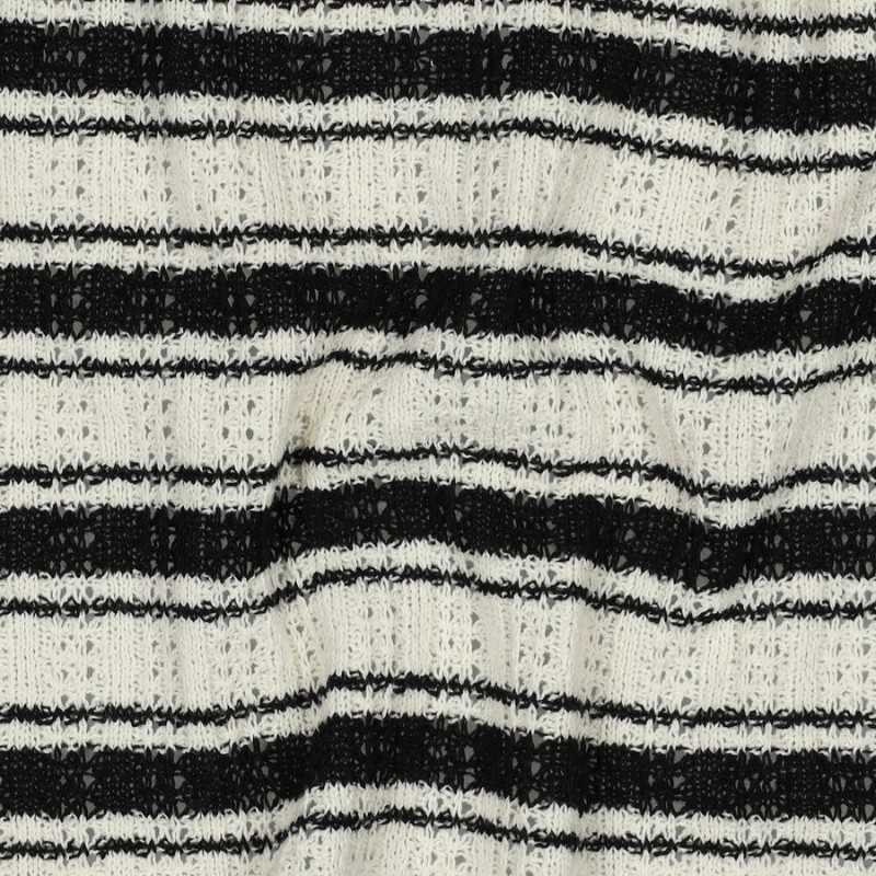 Craquez pour ce superbe tissu maille Sienna. Avec son motif graphique noir et blanc, ce tissu à l'aspect crocheté, vous permettra de confectionner des tenues tendance ! Réalisez gilet long, petit top, jupe longue doublée ou encore tunique de plage pour un été stylé !