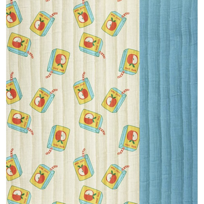 Craquez pour ce tissu double gaze matelassé Juice, avec d'un côté un motif brique de jus de pomme sur fond écru et de l'autre côté un beau bleu. Moelleux et facile à travailler, ce tissu est parfait pour un sac à dos de maternelle, une trousse scolaire ou une couverture nomade ultra-douce.
