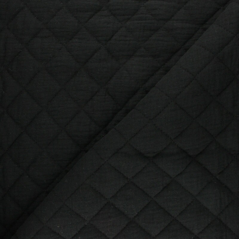 Tissu double gaze matelassé Réversible - noir x 10cm