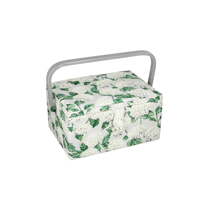 Découvrez la boîte à couture rectangulaire Hortensia avec de jolis Hortensias. Prenez soin de tous vos accessoires de mercerie avec cette jolie boite en tissu 100 % coton. Légère et pratique avec sa large poignée, elle sera idéale pour ranger et transporter votre matériel de couture partout avec vous !