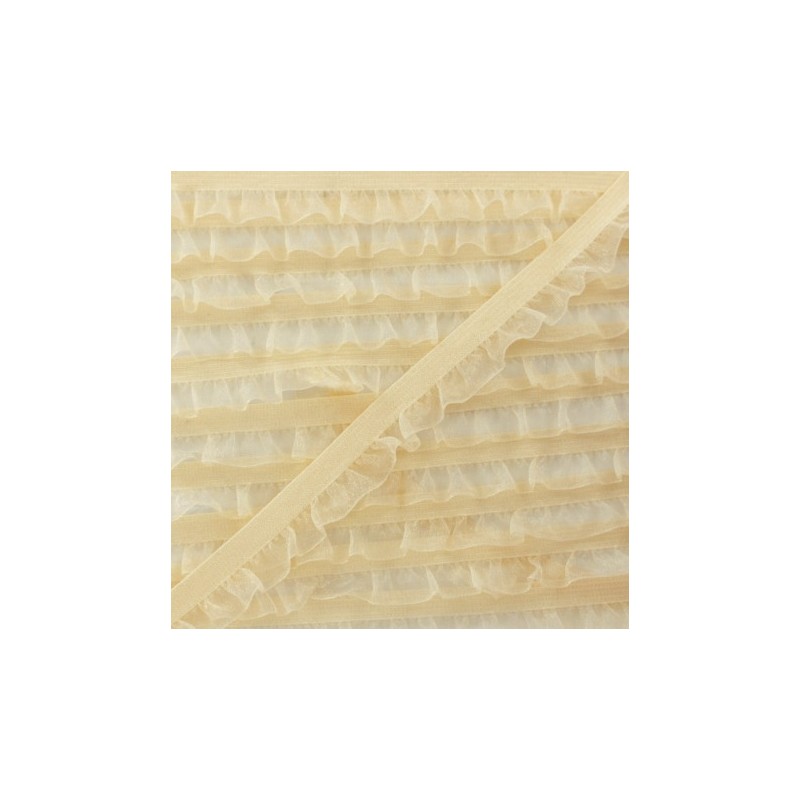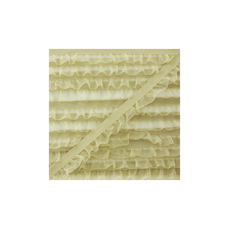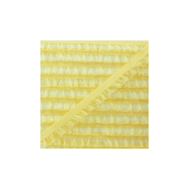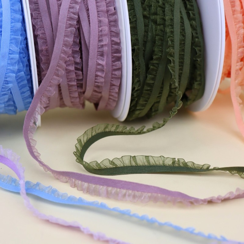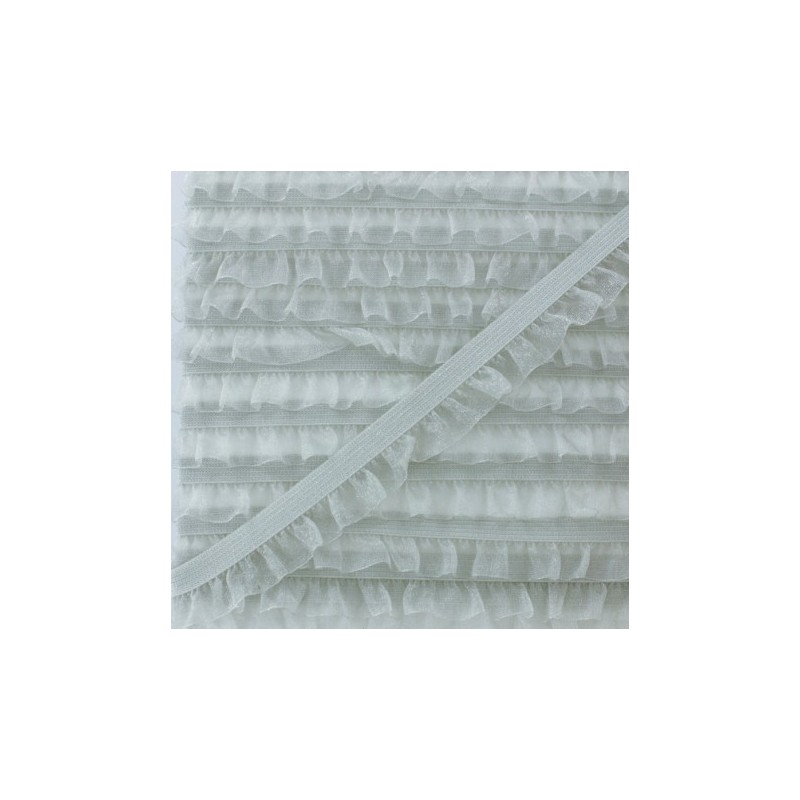 Ajoutez un peu de fantaisie et sublimez vêtements et accessoires avec ce ruban élastique à volant en organza. Certifié Oeko-Tex standard 100, ce galon élastique est d'une belle qualité vous permettra de confectionner toutes vos pièces de lingerie, bretelles de robes d'été, accessoires et en finitions de vos déguisements !
