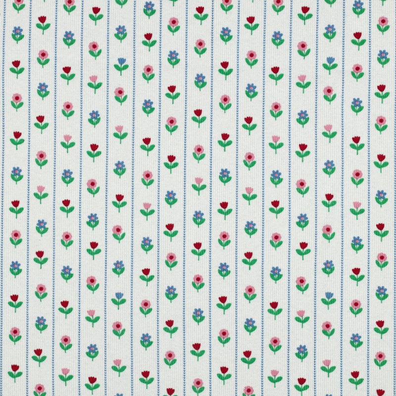 Craquez pour la douceur et l'extensibilité de ce jersey côtelé Pastelle fleurie, avec son motif fleuri trop mignon. Sa texture finement côtelée est parfaite pour réaliser des vêtements confortables et ajustés : bodies pour bébé, petits tops près du corps, leggings ou bonnets.