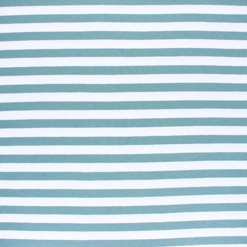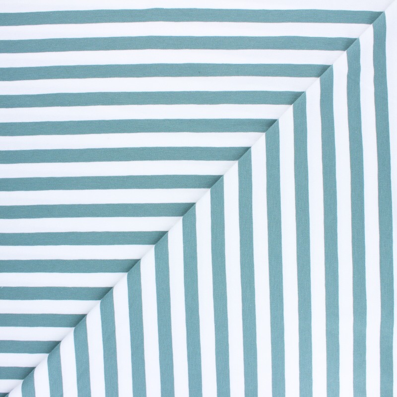 Tissu jersey de coton à rayures Lacanau - vert eucalyptus x 10cm