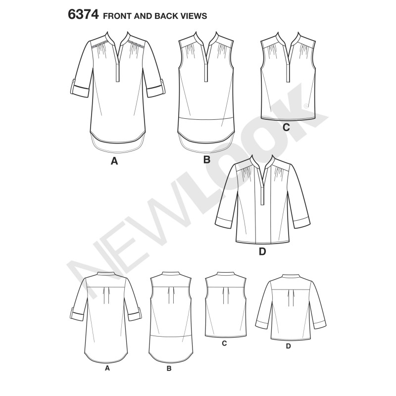 Craquez pour la gamme de patrons femme New Look et cousez une tunique col rond fendu avec le patron modèle 6374. Ce patron de tunique dispose de 4 variations de manches et de longueur. Confortable et élégante, optez pour une tunique légère !