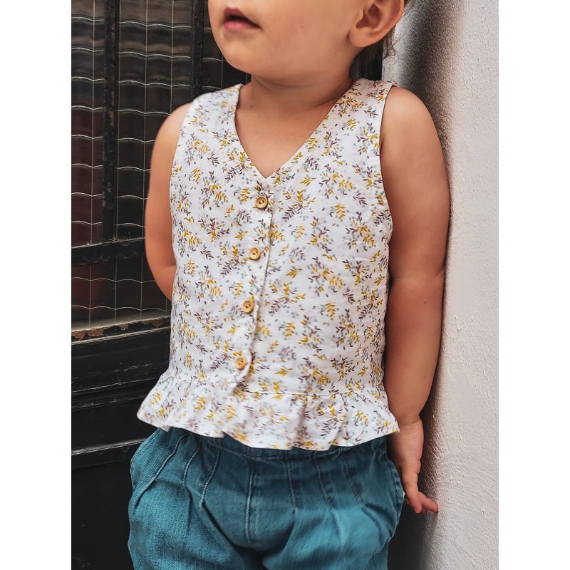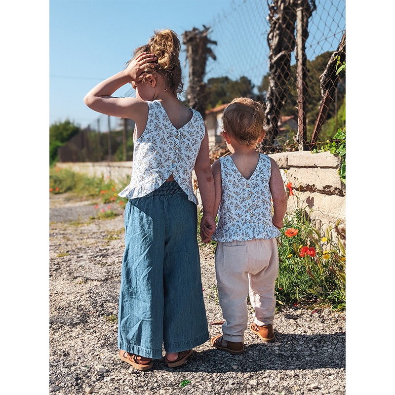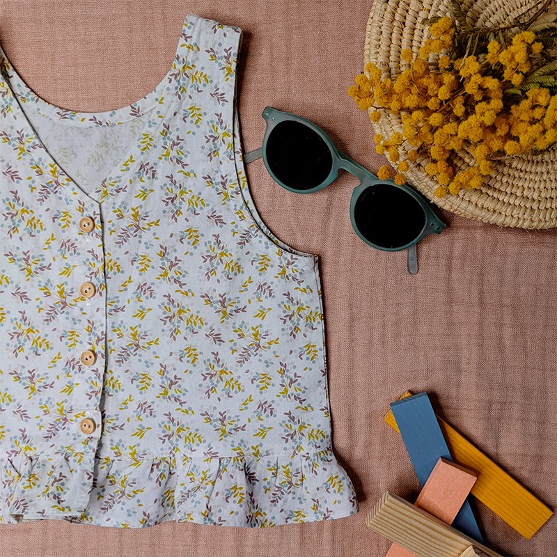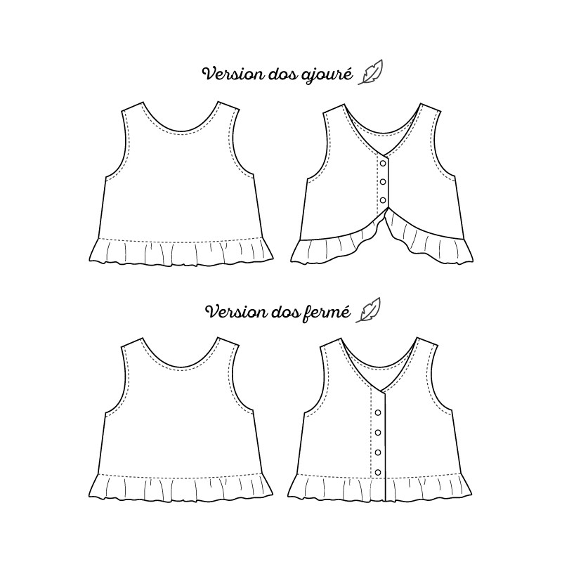 Découvrez Mésange, un petit top d’été réversible tout léger de la jolie marque de patrons enfants et bébés Marmaï. Ses petits volants lui donnent un côté vaporeux sans être trop chargé. Son encolure en V et sa boutonnière dos relèvent ce modèle avec discrétion. Deux versions sont proposées, ajouré dans le dos et un modèle réversible avec une finition droite. Tailles 6 mois à 12 ans.
