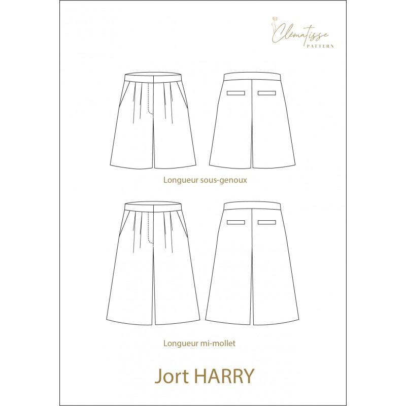 Le patron de couture Harry, c’est le jort — entre jupe et short — à adopter sans hésiter ! Avec sa coupe inspirée du tailoring masculin, ses poches italiennes et ses plis plats, il revisite la jupe-culotte en version moderne et affirmée. Proposé en deux longueurs, il se coud sans stress grâce à une méthode de braguette simplifiée.
