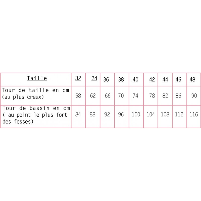 | Taille | 32, 34, 36, 38, 40, 42, 44, 46, 48 |