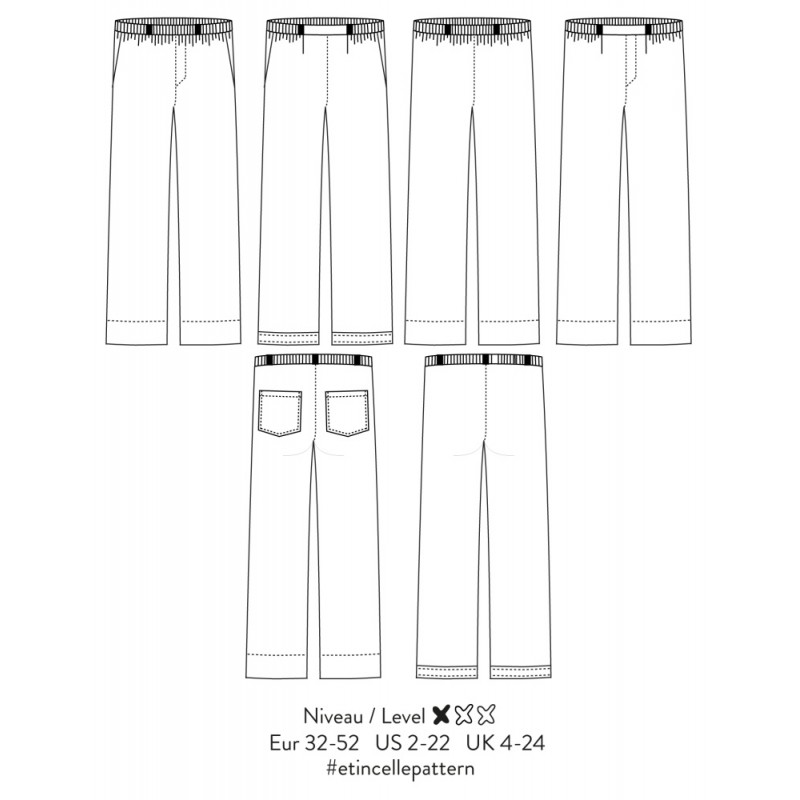 Le patron Étincelle d'Atelier Scammit réinvente le pantalon à pinces. Sa taille, totalement ou partiellement élastiquée, allie confort absolu et élégance. Personnalisable avec ses poches italiennes, sa fausse braguette et ses revers surpiqués, il se porte aussi bien taille basse que mi-haute. Un basique chic et modulable pour une allure moderne.
