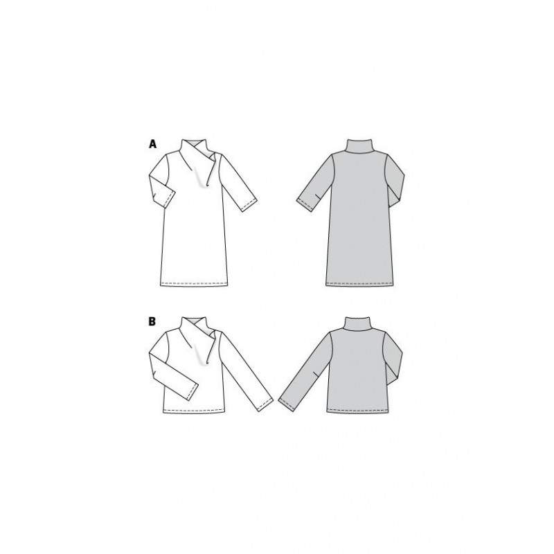 Découvrez la nouvelle collection de patrons de couture de la marque Burda Style spécial jersey ! Adoptez la robe pull n°5989 déclinable en tee-shirt avec des manches longues ou 3/4 et un col montant style bénitier ! Elle conviendra aux tailles 36 à 46.
