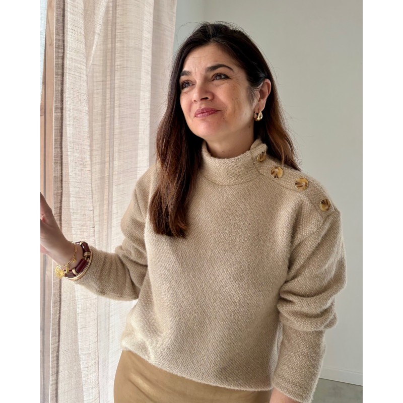 Découvrez le patron de couture Nino, le pull douillet et moderne qui s'adapte à toutes vos envies. Proposé en version avec ou sans manches, il se décline avec un col montant ou une encolure ronde. Sa patte de boutonnage à l'épaule,apporte un détail féminin et raffiné. Rapide et facile à coudre, c'est le projet idéal pour une cousette réconfortante.