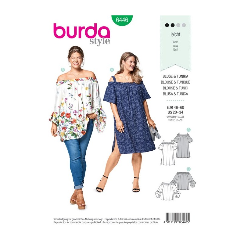 Description : Les épaules sont le point de mire de ce modèle au parement d'encolure rapporté à smock élastique : la tunique A mise sur de larges manches et des bretelles. La blouse B plaît avec ses manches volantées, qui se terminent au coude par une belle courbe vers le bas.