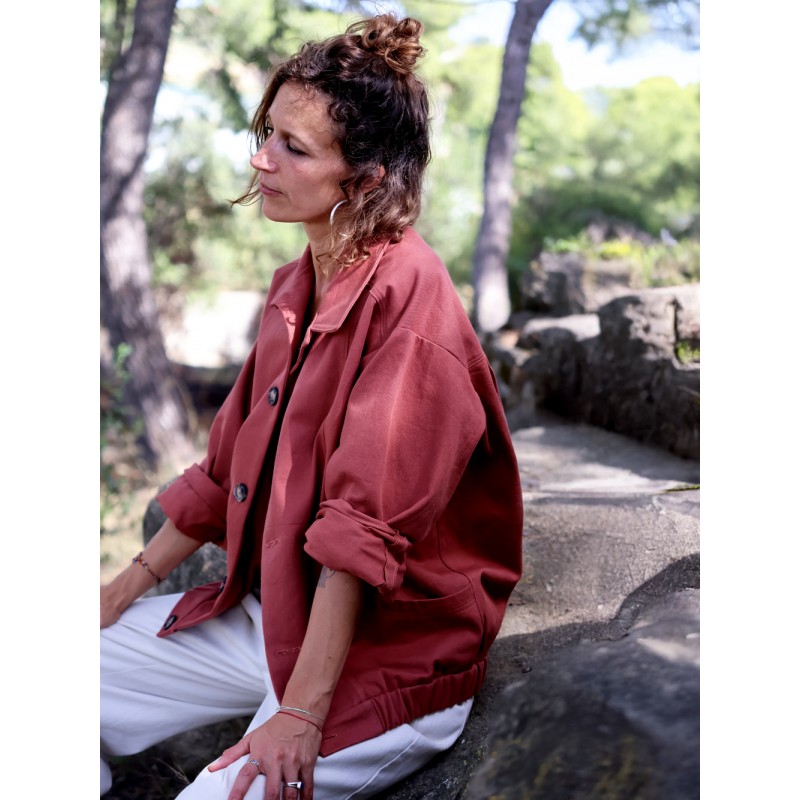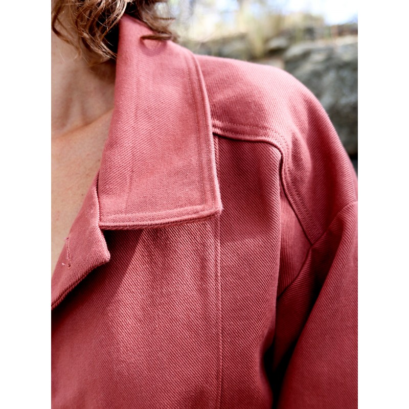 Ce modèle a été imaginé pour une réalisation dans un tissu chaîne et trame de poids moyen à lourd (>280-300g/m2) pour un look rétro :