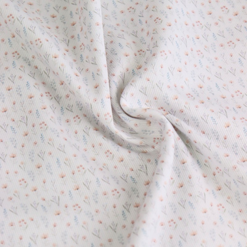 Découvrez ce tissu piqué de coton Florelle aux motifs de petites fleurs sur un fond blanc. Ce tissu 100% coton est idéal pour la confection de tous types de vêtements pour adultes et enfants, et d'accessoires ! Réalisez des tours de lits, turbulettes et accessoires coordonnés pour votre p'tit bout !