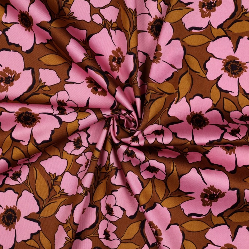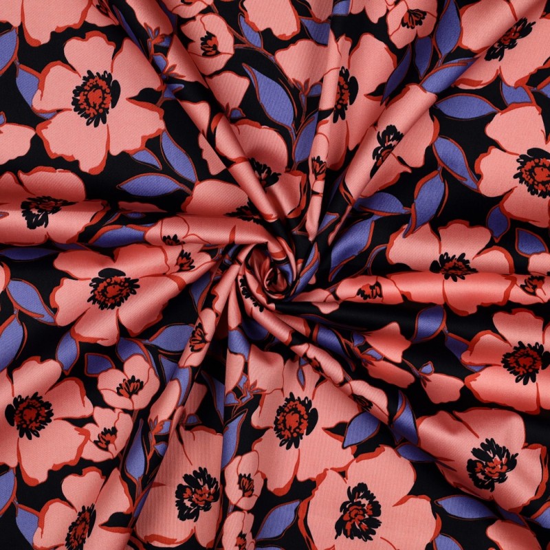 Découvrez le tissu satin de coton Saphira de la collection Pommé Fabrics. Ce tissu 100 % coton est orné de motifs fleuris colorés. Léger et agréable au toucher, il conviendra parfaitement à la confection de chemises, de robes longues ou de combinaisons.