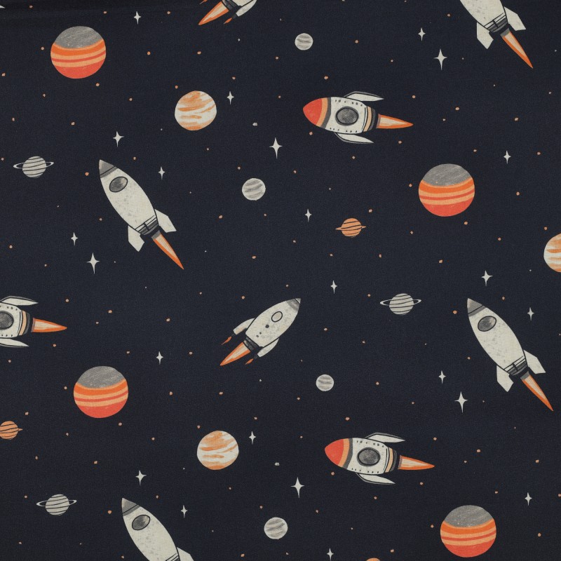 Découvrez cette popeline de coton Space signé Poppy Fabrics, douce et légère. On adore son motif de planète et de fusées sur un fond bleu marine. Ce tissu sera parfait une petite chemise, un ensemble de pyjama, ou des encore des pochons pour ranger les jouets !