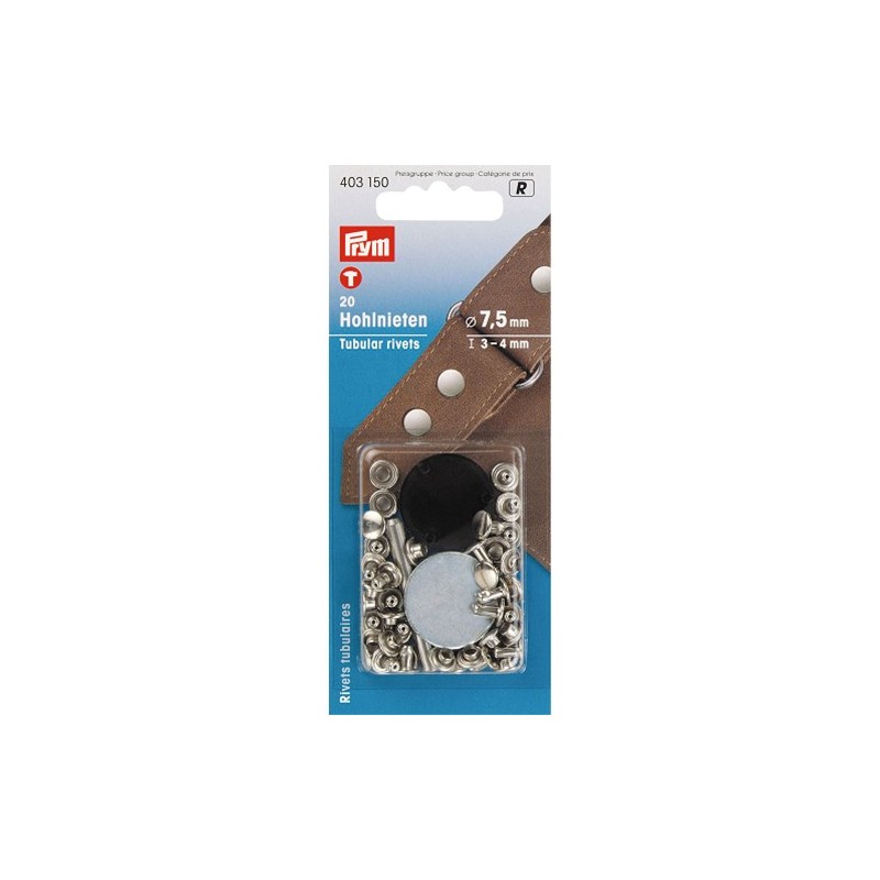 Rivets tubulaires laiton nickelé (argent) pour épaisseur du tissu 3-4m diamètre du rivet 7,5mm X20