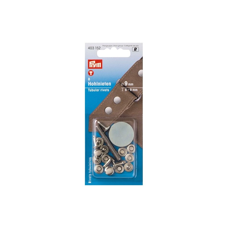 Rivets tubulaires laiton nickelé (argent) pour épaisseur du tissu 6-9m diamètre du rivet 9mm X8