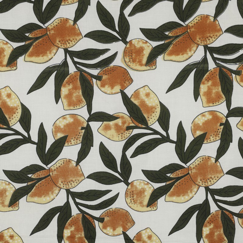 Découvrez ce tissu indien Neemboo fruité en voile de coton. Fabriqué en Inde et imprimé de façon traditionnelle avec des tampons en bois, ce voile de coton 100 % coton est idéal pour confectionner des vêtements légers et aériens : tops, chemises, robes, mais également des foulards ou encore des coussins et des rideaux.