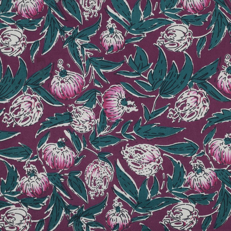 Découvrez ce tissu indien Goa fleuri en voile de coton. Fabriqué en Inde et imprimé de façon traditionnelle avec des tampons en bois, ce voile de coton 100 % coton est idéal pour confectionner des vêtements légers et aériens : tops, chemises, robes, mais également des foulards ou encore des coussins et des rideaux.