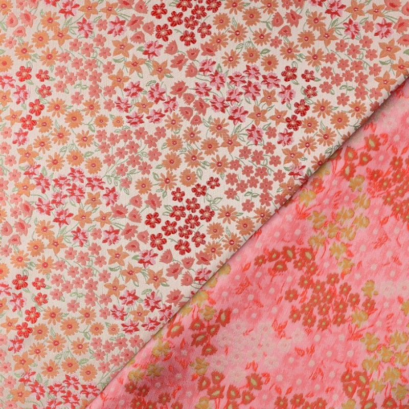 Ajoutez une touche de raffinement à vos créations avec ce tissu jacquard fleuri Florilège et ses fleurs colorées sur un fond rose clair brillant. Il est parfait pour coudre des vestes de mi-saison, des jupes structurées ou des shorts élégants.