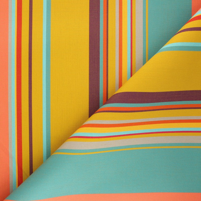 Découvrez notre toile de Plein air Calvi, certifiée OEKO-TEX®, miel à rayures. Ce tissu de haute qualité est très résistant avec un traitement anti-taches (Teflon) et anti-UV. Profitez de sa grande largeur (320 cm) pour créer ou rénover vos voiles d’ombrage et vos stores. Fabriquez également des poufs colorés et des coussins extérieurs pour votre jardin.